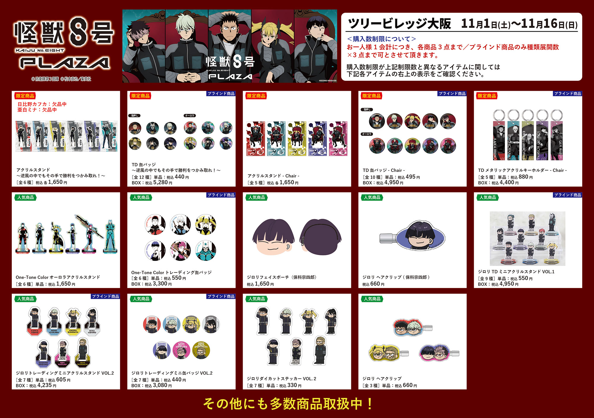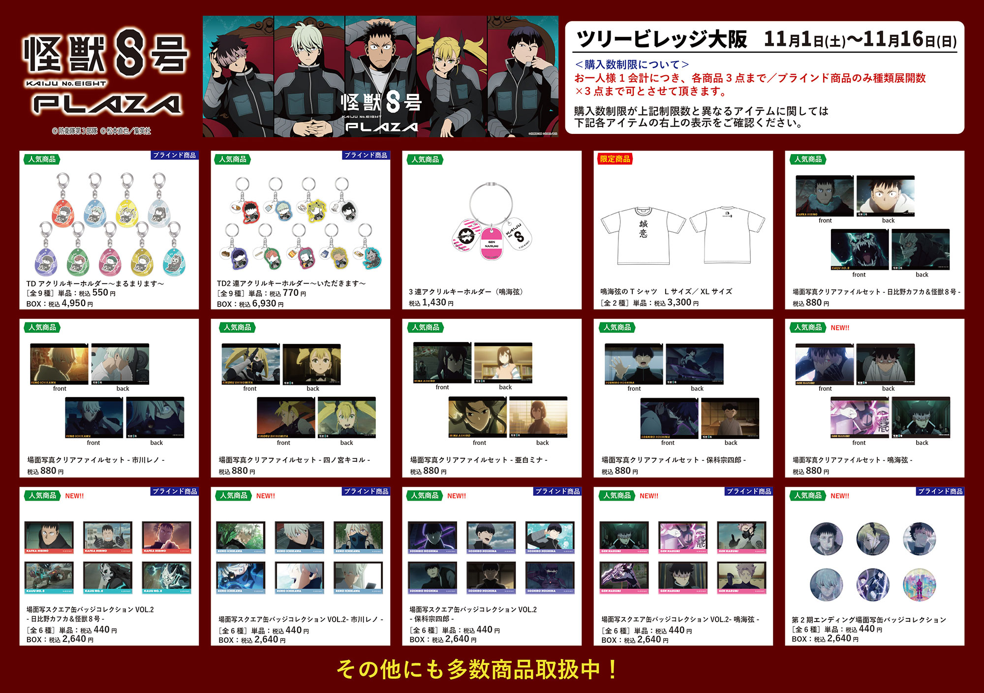 「POP UP STORE 怪獣8号PLAZA」がツリービレッジ大阪にて開催
