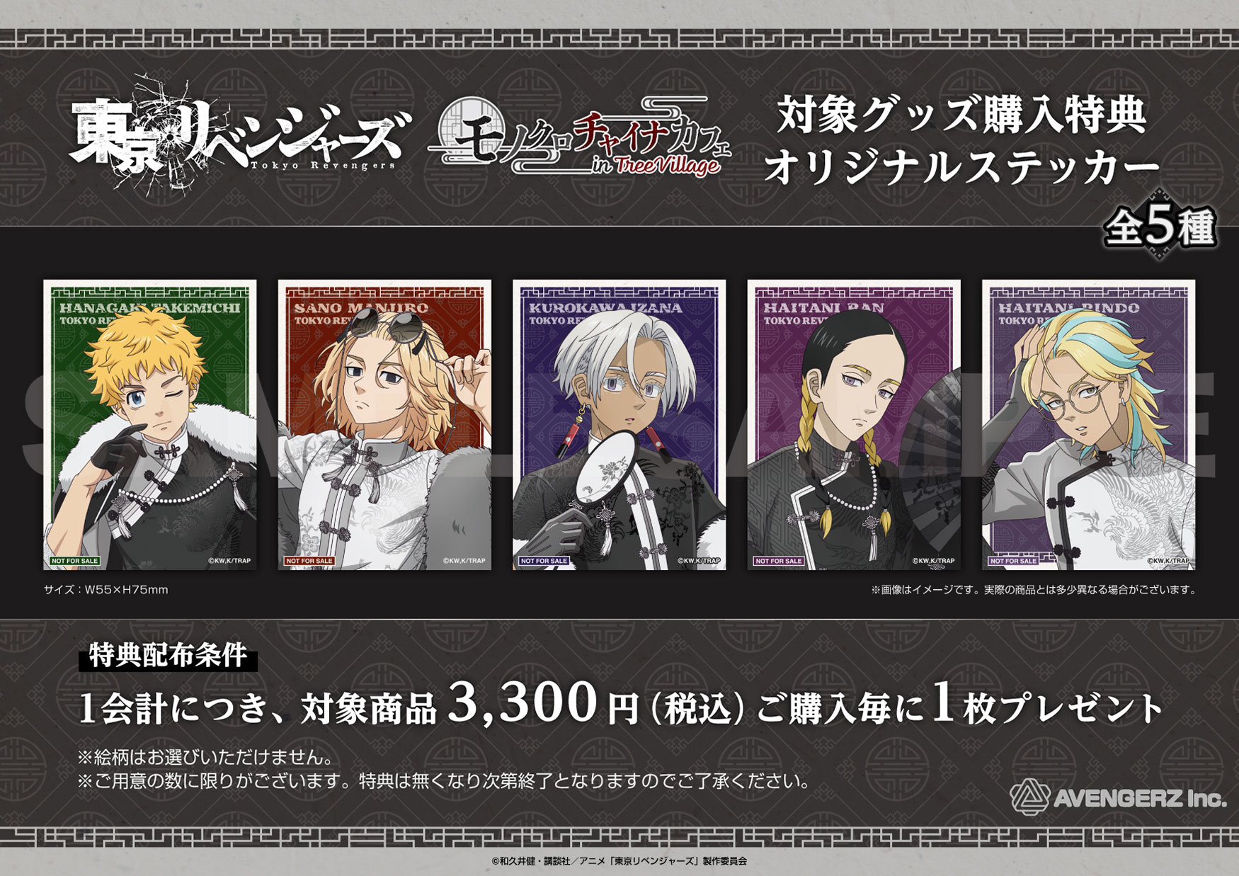 期間中、1会計3,300円(税込)お買い上げごとに【オリジナルステッカー(全5種)】をランダムで1枚プレゼント!