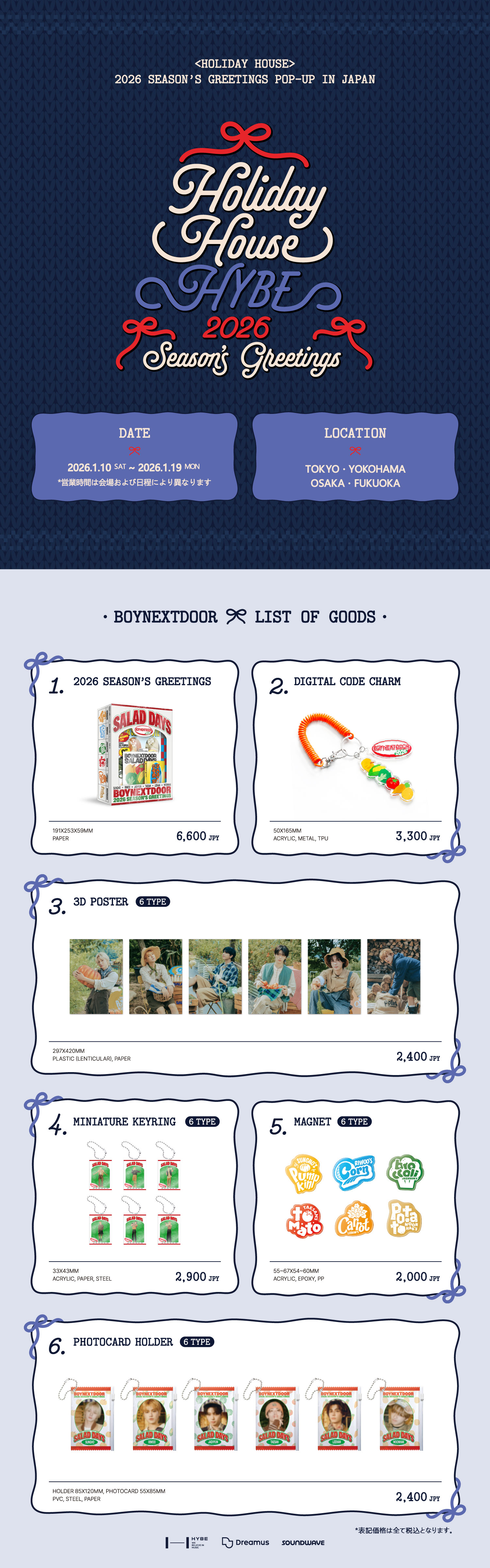 2026 SEASON'S GREETINGS:各5点まで