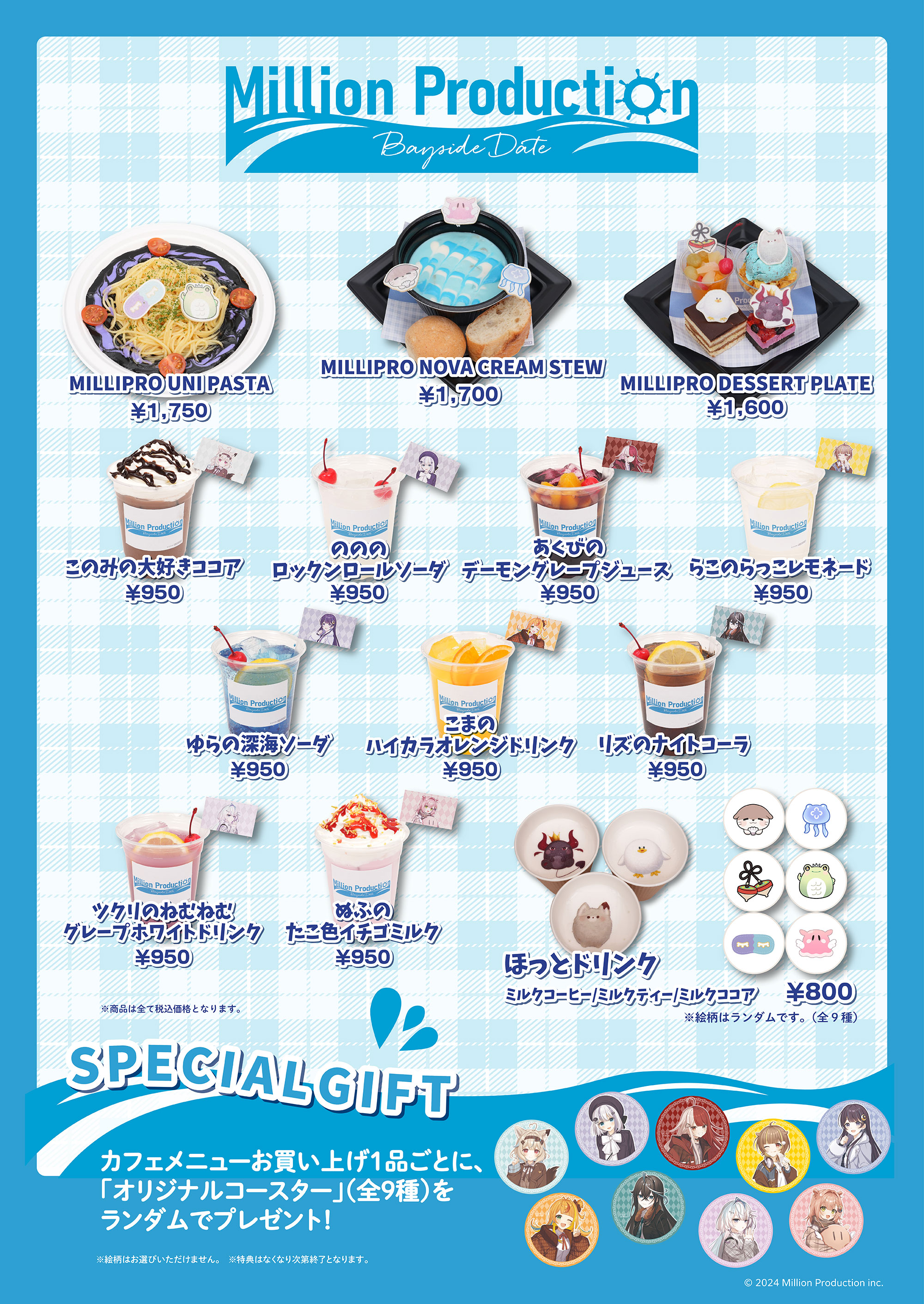 メニュー1品ご注文につき、特典「オリジナルコースター」(全9種)をランダムで1点プレゼント!
